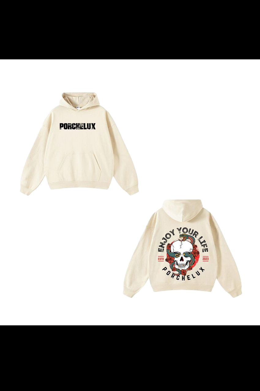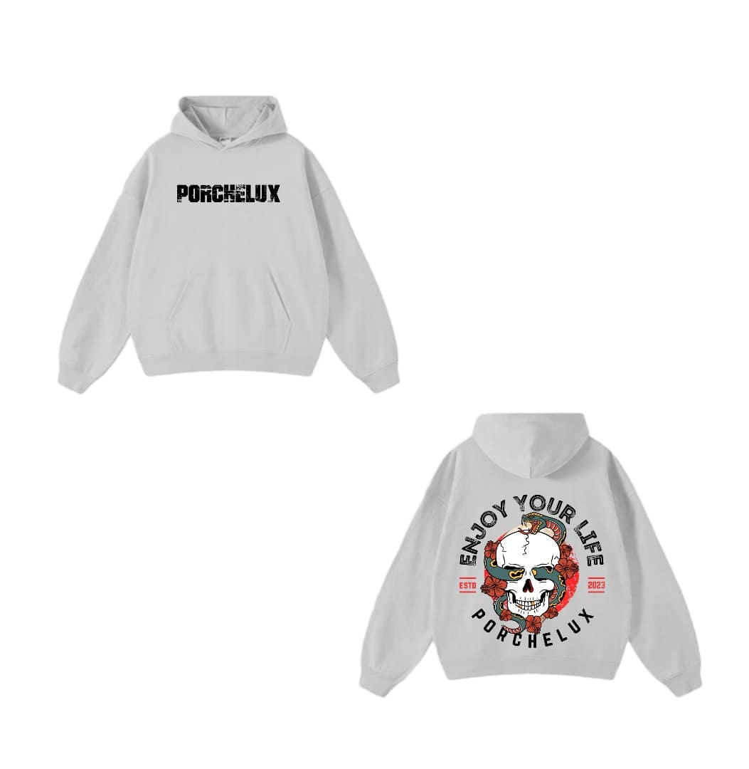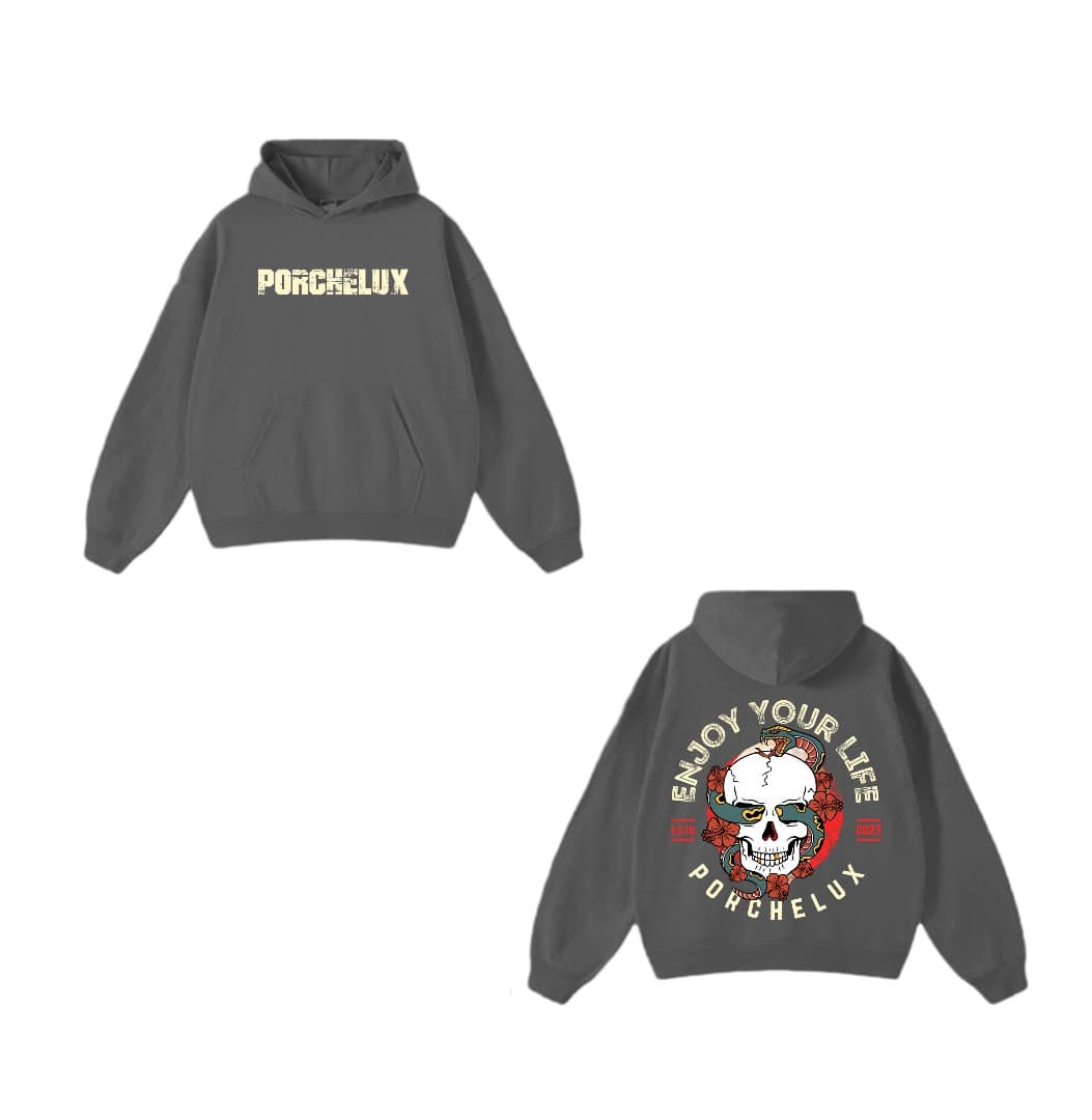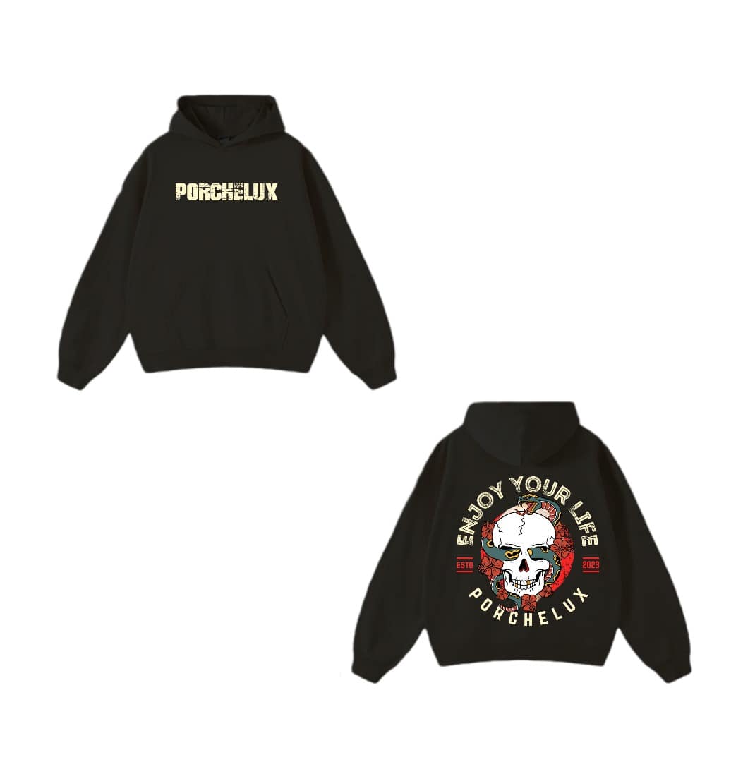 Elevate your streetwear game with the Porchelux Signature Hoodie, designed for comfort, confidence, and everyday style. This premium hoodie features the bold PORCHELUX logo on the front and our exclusive Enjoy Your Life skull artwork on the back — a statement piece for those who live life with purpose.